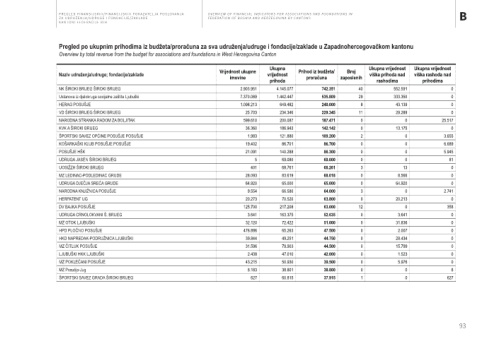 Pregled po ukupnim prihodima iz budžeta/proračuna za sva udruženja/udruge i fondacije/zaklade u Zapadnohercegovačkom kantonu