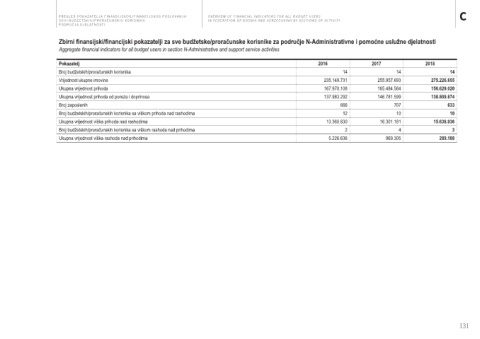 Zbirni finansijski/financijski pokazatelji za sve budžetske/proračunske korisnike za područje N-Administrativne i pomoćne uslužne djelatnosti