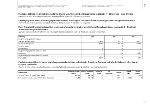 A Pregled pokazatelja finansijskog/financijskog poslovanja svih regled pokazatelja finansijskog/financijskog poslovanja svih Overview of financial indicators for all companies verview of financial indicators for all companies DOMALJEV A C-ŠAMA C O OVER VIEW OF FINANCIAL INDICATOR S F OR COMPANIES BY SEC TIONS OF A C