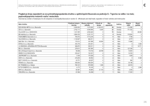 Pregled po prihodima od izvoza za sva privredna/gospodarska društva u opštini/općini Busovača za područje G - Trgovina na veliko i na malo; Pregled po broju zaposlenih za sva privredna/gospodarska društva u opštini/općini Busovača za područje G - Trgovina na veliko i na malo;