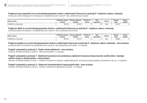 Pregled po dobiti za sva privredna/gospodarska društva u opštini/općini Busovača za područje R - Umjetnost, zabava i rekreacija
