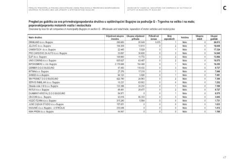 Overview by profit for all companies in municipality Bugojno in section G - Wholesale and retail trade; reparation of motor vehicles and motorcycles Overview by loss for all companies in municipality Bugojno in section G - Wholesale and retail trade; reparation of motor vehicles and motorcycles