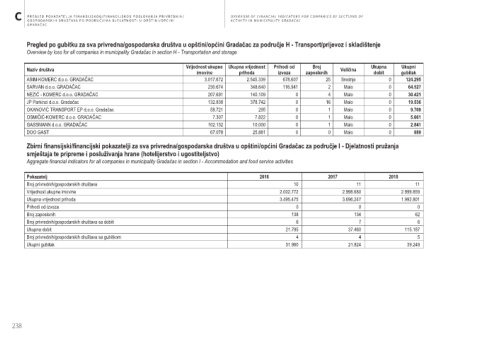 Pregled po gubitku za sva privredna/gospodarska društva u opštini/općini Gradačac za područje H - Transport/prijevoz i skladištenje