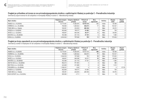 Pregled po broju zaposlenih za sva privredna/gospodarska društva u opštini/općini Kladanj za područje C - Prerađivačka industrija