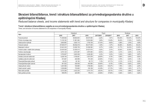 Trend i struktura bilansa/bilance uspjeha za sva privredna/gospodarska društva u opštini/općini Kladanj