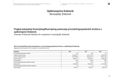 Aggregate financial indicators for all companies in municipality Srebrenik