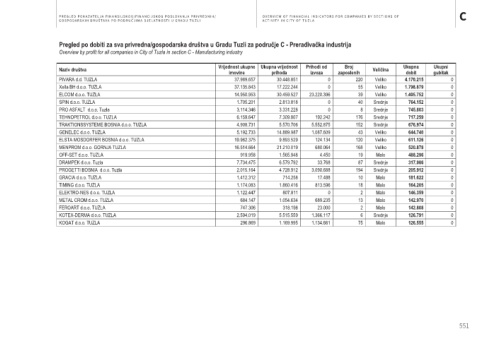 Pregled po broju zaposlenih za sva privredna/gospodarska društva u Gradu Tuzli za područje C - Prerađivačka industrija Pregled po dobiti za sva privredna/gospodarska društva u Gradu Tuzli za područje C - Prerađivačka industrija