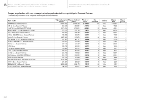 Pregled po prihodima od izvoza za sva privredna/gospodarska društva u opštini/općini Bosanski Petrovac