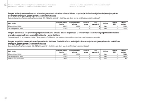 Pregled po dobiti za sva privredna/gospodarska društva u Gradu Bihaću za područje D - Proizvodnja i snabdijevanje/opskrba električnom