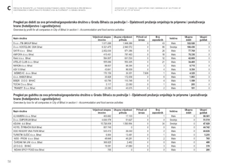 Pregled po dobiti za sva privredna/gospodarska društva u Gradu Bihaću za područje I - Djelatnosti pružanja smještaja te pripreme i posluživanja
