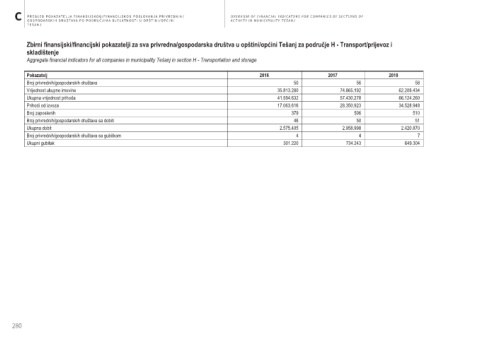 Zbirni finansijski/financijski pokazatelji za sva privredna/gospodarska društva u opštini/općini Tešanj za područje H - Transport/prijevoz i