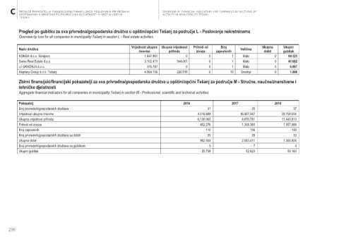 Pregled po gubitku za sva privredna/gospodarska društva u opštini/općini Tešanj za područje L - Poslovanje nekretninama
