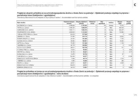 Overview by value of total assets for all companies in City of Zenica in section I - Accommodation and food service activities Overview by total revenue for all companies in City of Zenica in section I - Accommodation and food service activities